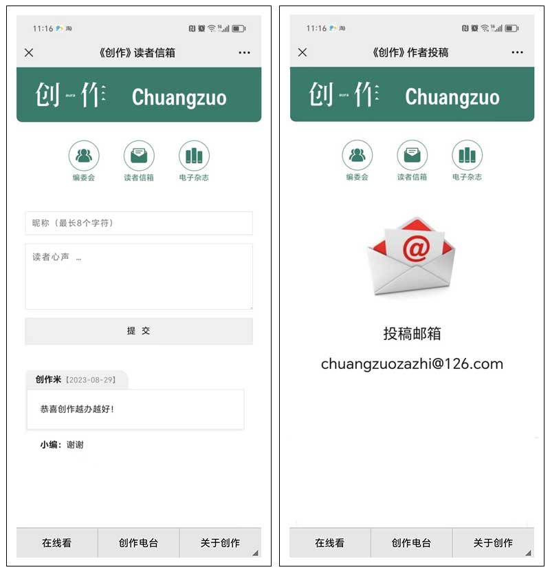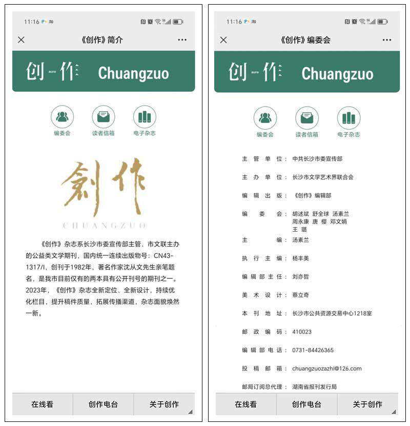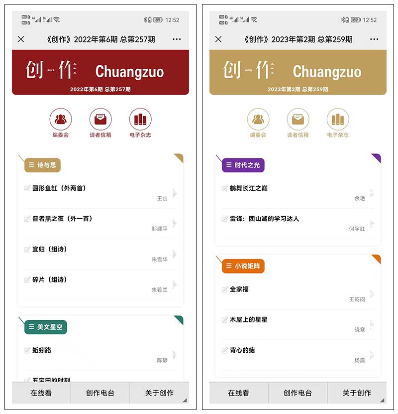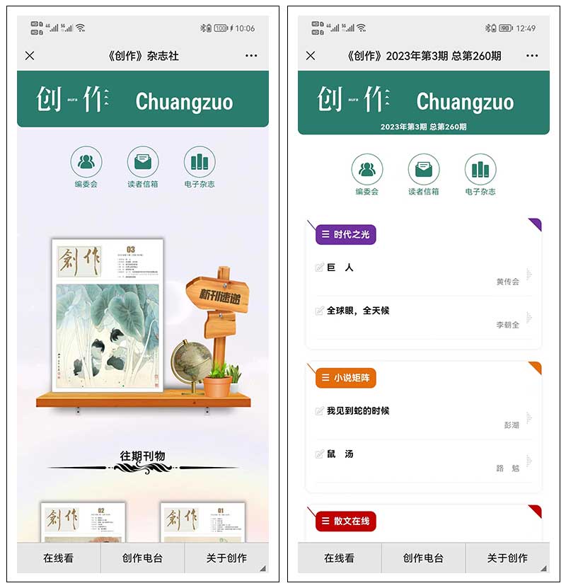 一、受委托定制開發(fā)的《創(chuàng)作》電子雜志上線: